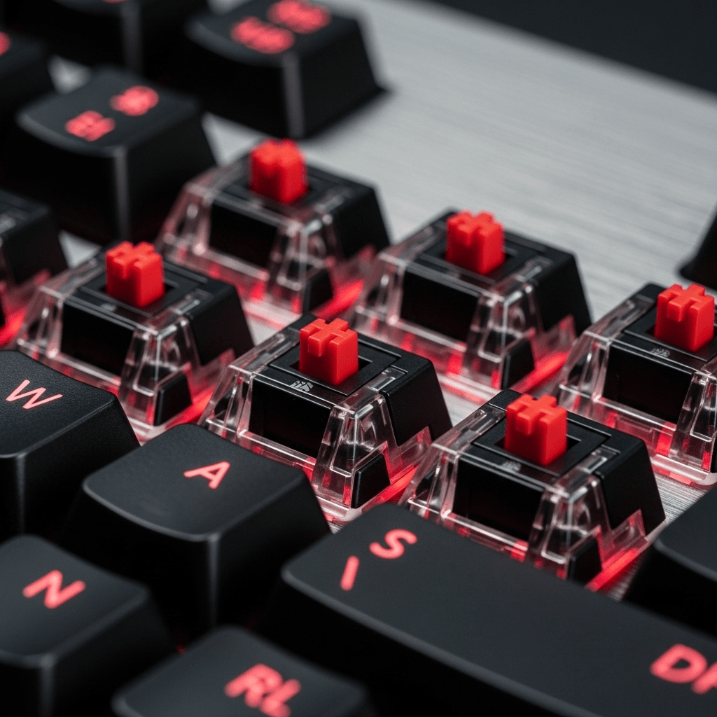 Switches Cherry MX Red (réactifs, silencieux, durables).